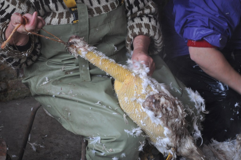 Hverken min mor eller jeg er de store helte til det med at slagte. Vi er fandme gode til at pille, men at hugge hovedet af en and, er bare ikke muligt. Så vi må tilkalde bødler til dagen.
