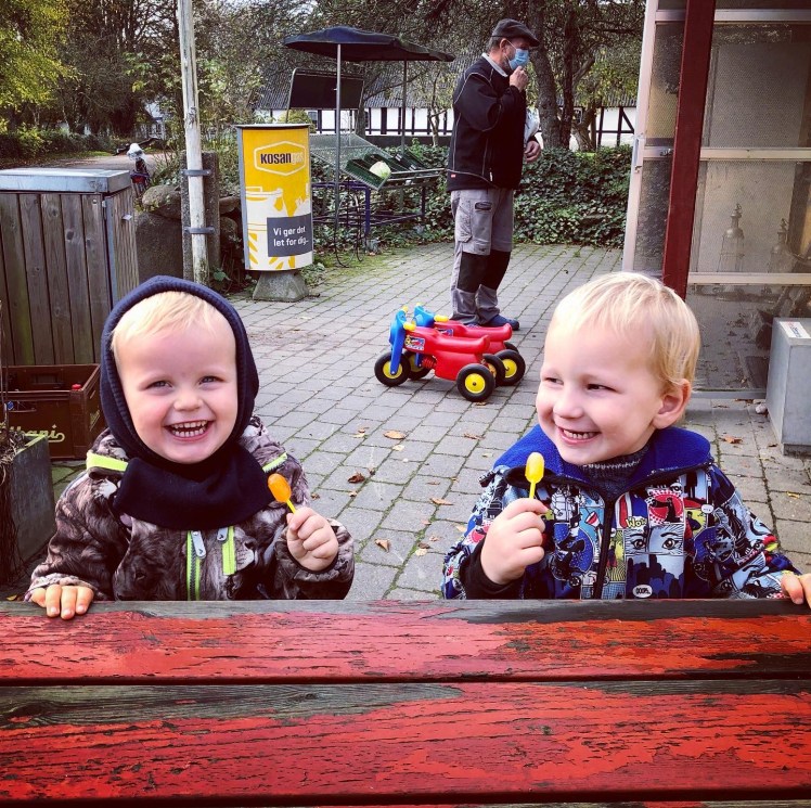 Når han er hjemme spørger han dog tit efter nogen “lille børn” at lege med. Men han går jo i institution i Faaborg og får sin lyst styret den vej.