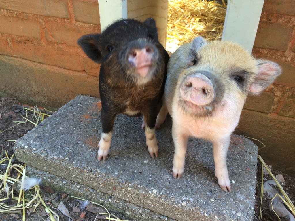 Jeg har er Alexis og Dolly, der engang var to virkelig nuttede minigrise, men nu er ikke er særlig mini mere, da de ikke laver andet end at æde.